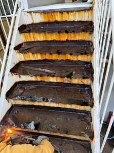 元々あったササラに鉄板を溶接→その鉄板に踏板を溶接、という順序で元の階段の形を取り戻したのです。