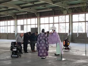 お知らせ NEWS ホームお知らせ第3工場安全祈願祭開催 2025.12.23 第3工場安全祈願祭開催 内田鉄工株式会社では、このほど本社近くの土地及び建屋を取得し、新たに第3工場として稼働させるべく準備を進めていく事となりました。 それに伴い、本日12/23(火)、本格的な修繕・改修工事を前に郡山市白岩町の高屋敷稲荷神社にお越しいただき、安全祈願祭を執り行いました。 今後はこの第3工場にて、建物本体の他、階段や手すり、設備架台などの建物付帯の小規模鉄骨やスロープ、蓋等の金物の製作も行っていきます。 第3工場の本格稼働は来年2026年3月頃を予定しております。 お知らせ一覧へ